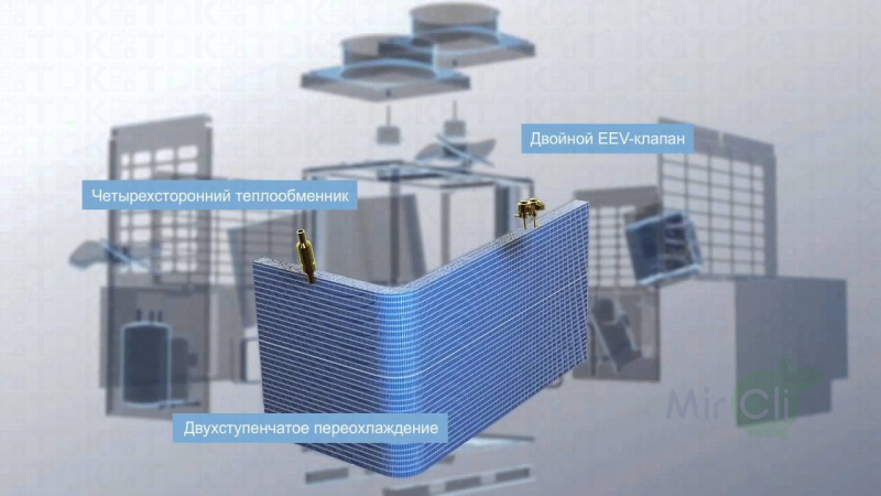 Серия MRV III-RC-это новая разработка Haier Corporation, которая еще больше повышает энергоэффективность представленного мультизонального оборудования. Возможность рекуперации тепла при работе внутренних блоков в разных режимах, так как в смешанном режиме тепловая энергия охлажденного внутреннего воздуха не выделяется наружным конденсатором, а используется для тех внутренних блоков, которые должны работать на обогрев. Экономия энергии системы достигает в среднем тридцати процентов. Отличное решение как для административных и офисных зданий, ресторанов, магазинов, так и для больших квартир или хижин. Улучшенная конструкция теплообменника с большей эффективностью.
