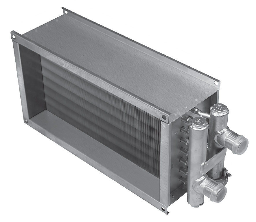Монтаж: Водяные воздухонагреватели поставляются готовыми к подключению и устанавливаются внутри помещения. Монтаж воздухонагревателей осуществляется путем его крепления к ответным фланцам воздуховодов или других агрегатов вентиляционной системы. Расстояние до решетки, отвода или другого вентиляционного устройства должно быть не менее диагонального размера нагревателя.