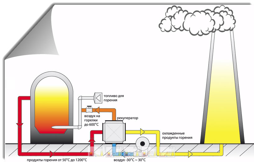- снизить расход топлива за счет увеличения температуры горения отходящими газами (схема отопления котельных, печей и др.);