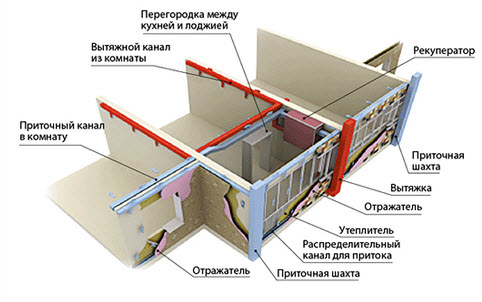 Особой разновидностью принудительной системы вентиляции является приточная вентиляция с подогревом и рециркуляцией тепла, которая обеспечивает частичное нагревание входного воздушного потока за счет удаляемого из помещения теплого воздуха при помощи специального устройства – рекуператора. При этом основной подогрев наружного воздуха осуществляется обычным воздухонагревателем.