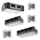 Канальный кондиционер является сплит-системой скрытого типа. Он используется, чаще всего, для кондиционирования сразу нескольких помещений. Внутренний блок крепится за подвесным потолком или в подсобном помещении. Обработанный воздух раздается по сети воздуховодов, размещаемых в подпотолочном или межстенном пространстве. Благодаря такой конструкции, канальный кондиционер может охлждать сразу несколько помещений. Типичная мощность этих кондиционеров составляет 12-25 кВт, что достаточно для охлаждения небольшого офиса или 4-5 комнатной квартиры Принципиальное отличие канального кондиционера от остальных сплит-систем - в возможности подачи свежего воздуха в объемах, необходимых для полноценной вентиляции кондиционируемых помещений. Таким образом, использование одного канального кондиционера позволяет решить задачи, как вентиляции, так и кондиционирования сразу нескольких помещений. Нужно только позаботиться о правильном расчете воздухообмена, подборе кондиционера по мощности охлаждения и статическому давлению, предусмотреть установку электрического или водяного калорифера для подогрева наружного воздуха в зимнее время.